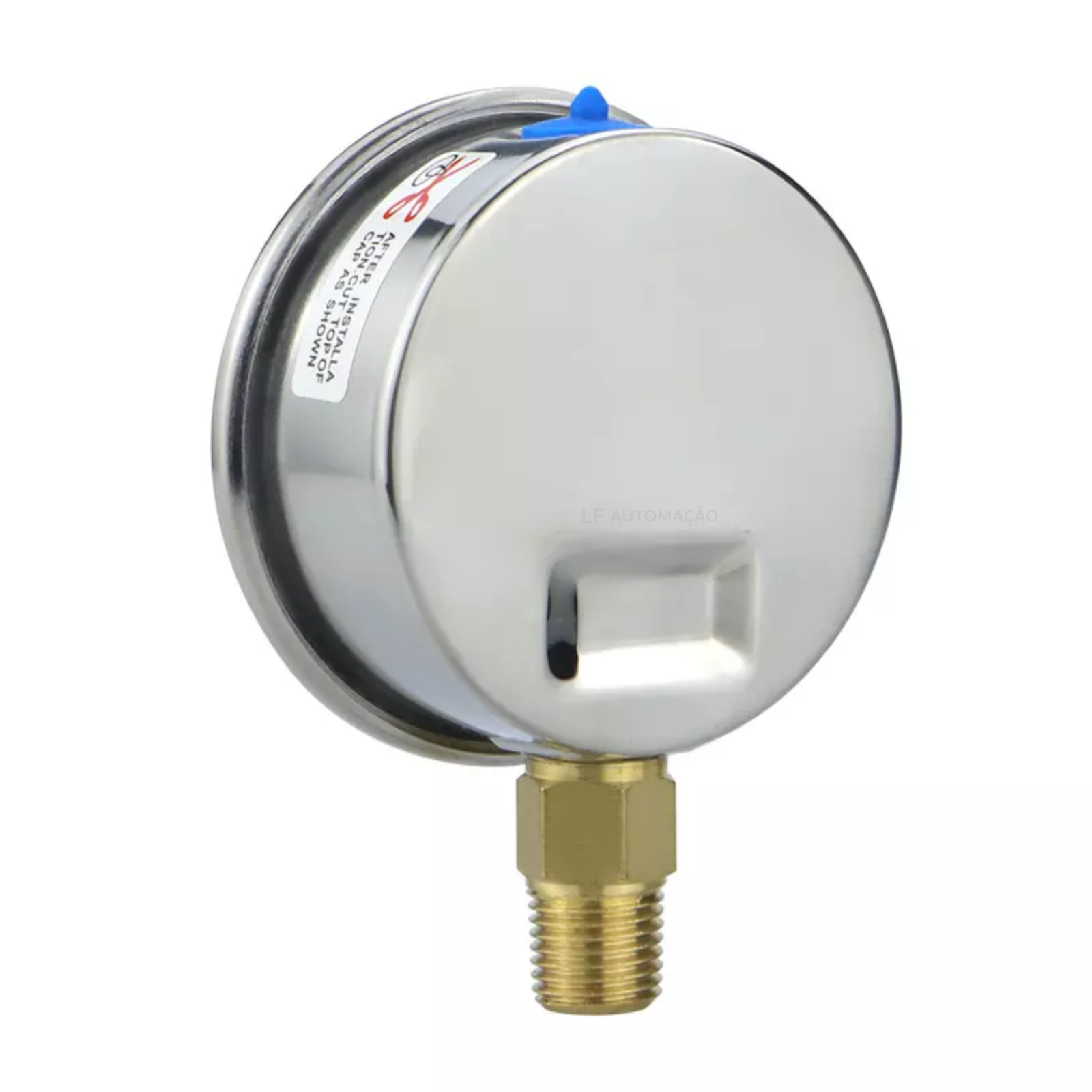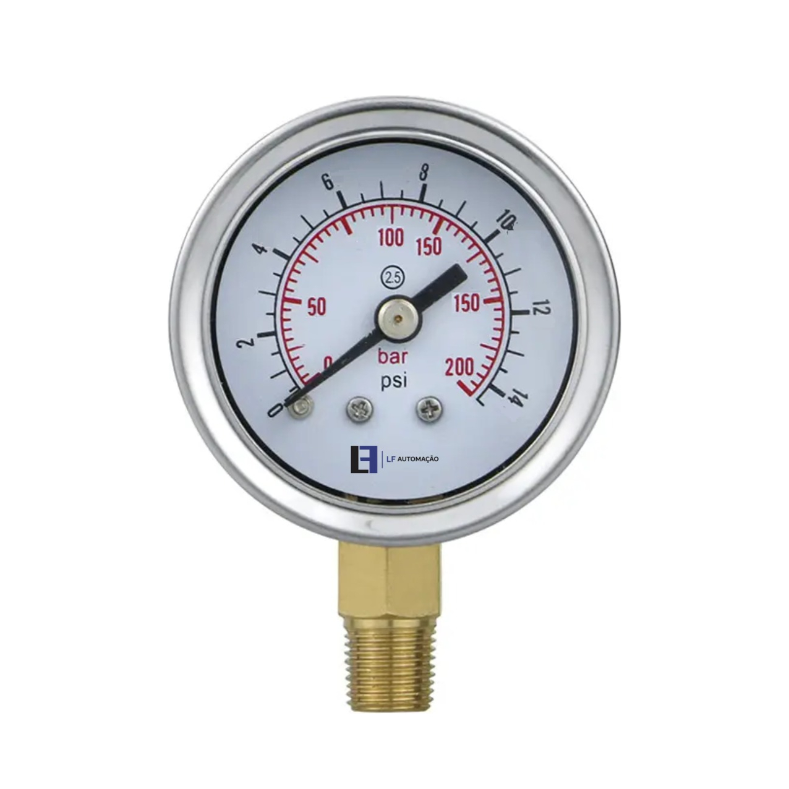 Manômetro Inox 2.1/2" (63MM) - Rosca 1/4" Macho NPT - Saída inferior (vertical) - 0-14 Bar / 0- 200 Psi - Com glicerina